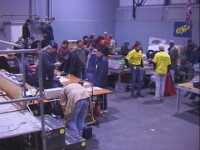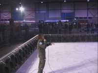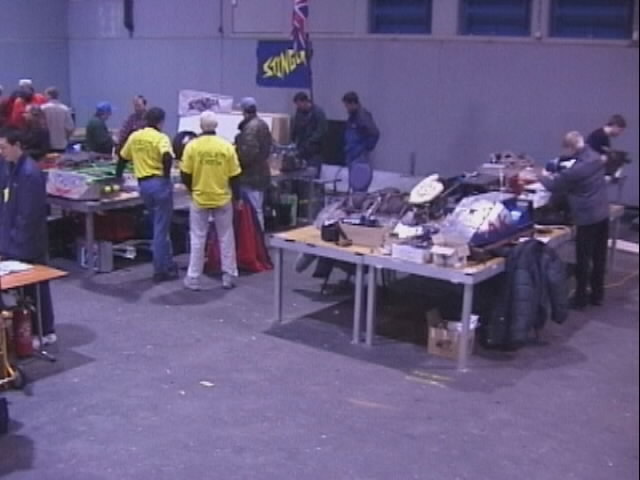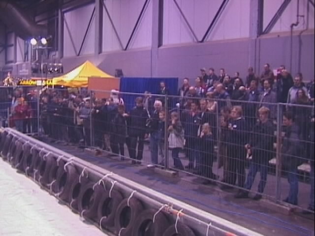 The fights started about half an hour late, and were not being got through at the 15 minute intervals that Don had assured us was necessary to see them all completed. The reason? Well, this was the first event that Don and his team had organised, and as he assures us, the last he will organise at a radio control exhibition, because we had only four 40MHz frequencies that we could use! The range of 40MHz crystals that are legal in Holland is a lot smaller than in the UK, and the vast majority of those were being hogged by the RC car and truck racers, who of course had also travelled from another country to be there and had to half dismantle their machines to change crystals... Grrr! We were expecting a few crystal changes, but there turned out to be more than a few...