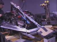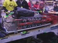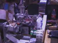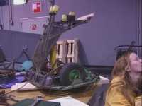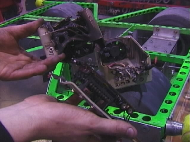 Our first fight of the international competition was against Alien Destructor. We were pushing them around the arena and hitting each other pretty hard until one of our chains came off, and we had to conceed the fight. The chains on Tornado were still the same ones that had been fitted since we fought Kan Opener in Peteborough, and were obviously more damaged than we thought. We also found that a motor fan had moved on the other side of the drivetrain, and so we had some repairs to do...