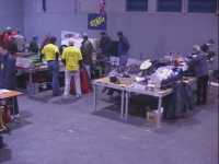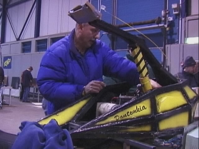 Time was getting on, and apart from one last show fight between M2 and Dantomkia, the final was the last UK robot fight. We found our driver and got him to bring the coach round so we could load up - everyone rallied round to be ready to leave on time - I think that no-one wanted to be left in Holland over Christmas, and given the crystal hassles, most of us were ready to go anyway. We were ready to leave 45 minutes early!