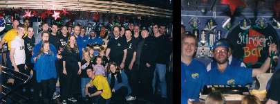 Once we got on the ferry work continued on the Safety document, and Ed managed to blag himself (and a group of us) onto the bridge! It was only when we got back to the UK that we learnt a terrorist threat had been made to shipping - we wondered why at one point the ferry had throttled back to a near stop to let a long row of lights cross stop its path - we can only conclude it was an aircraft carrier! Also on board the ferry was "Stingers Bar" - and Tim, Karl and Kevin couldn't resist being the other side for a change!