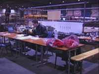 The trip to Zwolle was uneventful, although our delayed ferry and some bad traffic meant we arrived about an hour later than planned. Don showed us the pits area and arena - it was one of the very best we have seen outside the televised series, with really solid walls and strong bullpen in which to activate the robots.