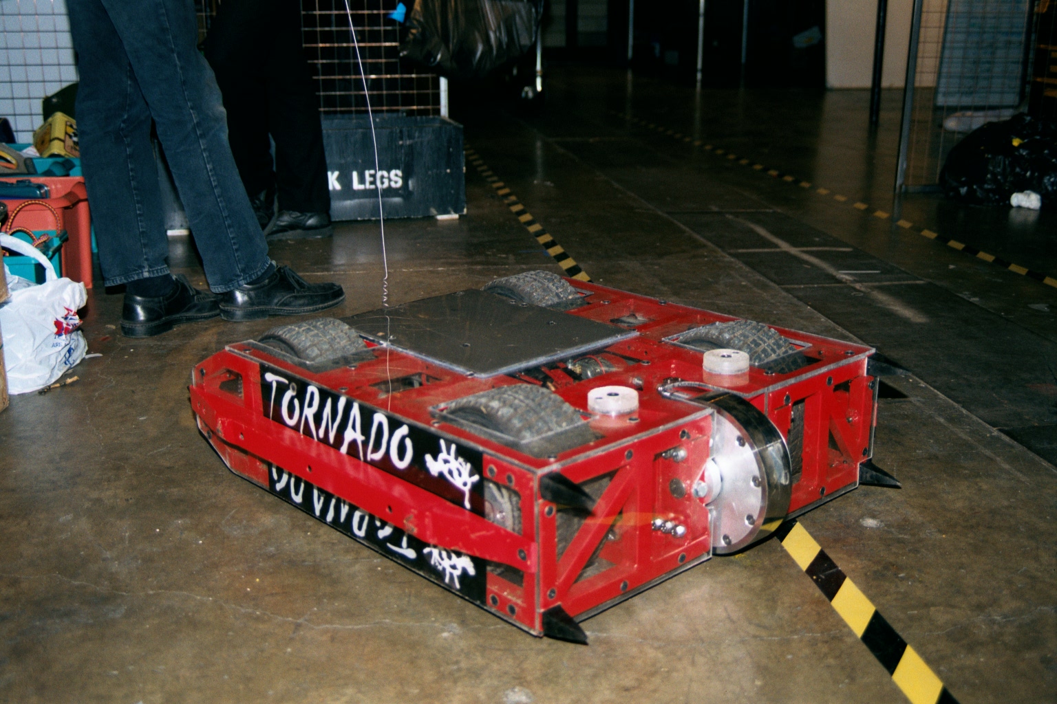 Tornado and the team outside the pits area at Earls Court. It's a bit more tatty now, having fought a few battles. We'd just beaten Chaos 2 when this photo was taken.
