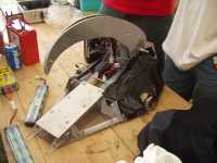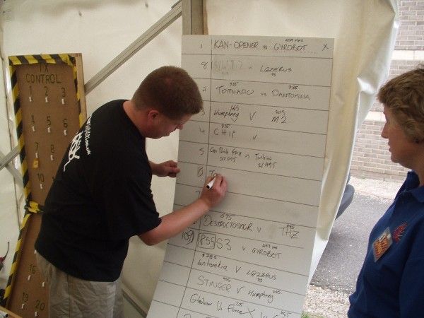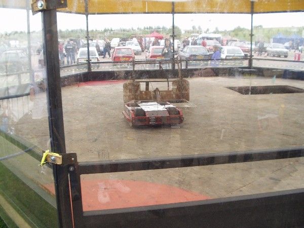 This Roaming Robots event, held at the Heritage Motor Centre, Gaydon, was a sideshow to the InterFord show, where lots of Ford clubs meet up every year. In attendance were Leveller, Hells Teeth, Tetanus III, M2, Dantomkia, S3, Lambsy, Terrorhurtz (with Beta on display), Stag, Kan Opener, Chip, Gyrobot, Destructor, Ripper, Tornado, plus the featherweights Gladiator, Force X, Cutlet and of course the Roaming Robots pay-to-drive machines along with T-Bone. Dave was away on business in Korea, so Ed from Storm filled his place as a renta-teammember for the day. ![]() Above photo courtesy of Ian Lockhart/Lambsy Bryan then drove against Tetanus II. Bryan pushed them around, until Tetanus lost drive on one side and so the fight was ended. ![]() ![]() ![]() Above photos courtesy of Ian Lockhart/Lambsy Ed was next up, taking on Tetanus, Stag and Destructor (who had problems and didn't really take part in the fight). Stag got pushed in the pit straight away, and Tetanus got pushed all over the place again... ![]() Above photo courtesy of Ian Lockhart/Lambsy Ed also drive Force X in the featherweight fights - but drove in the pit twice! Gladiator won both feather fights. ![]() ![]() Above photos courtesy of Ian Lockhart/Lambsy Have a look at the InterFord site, the Heritage Centre, and also Roaming Robots.