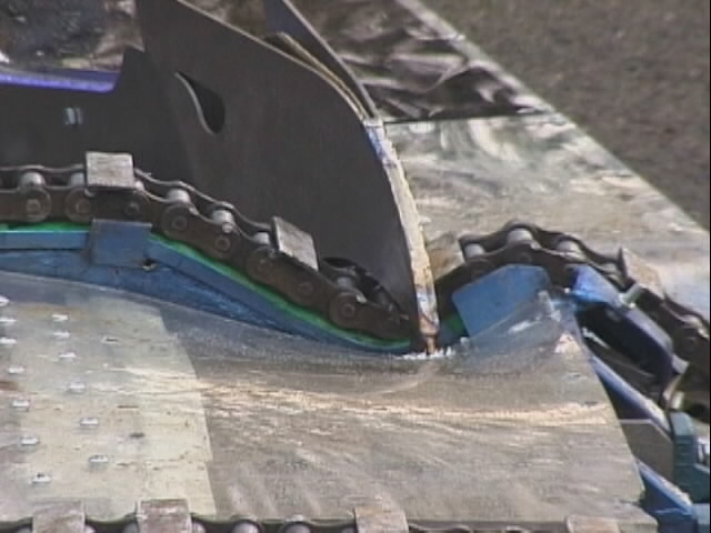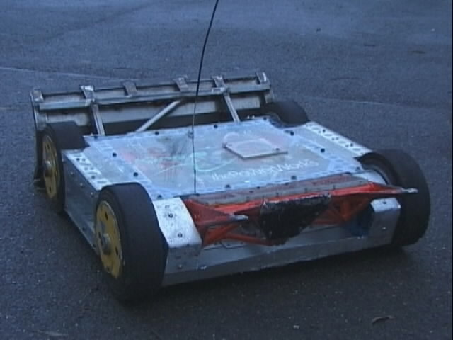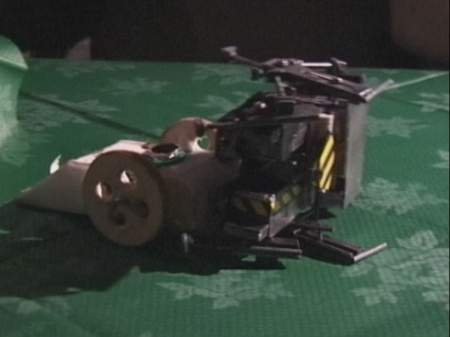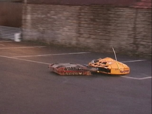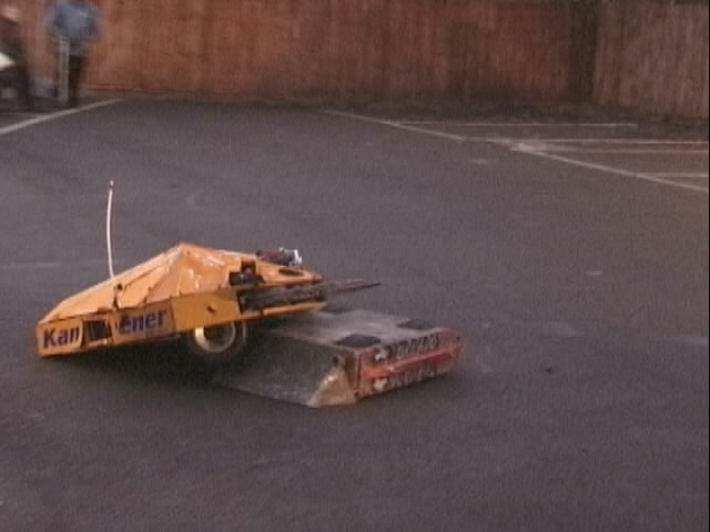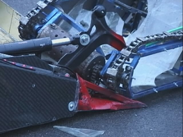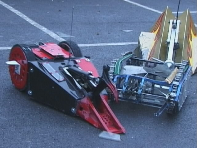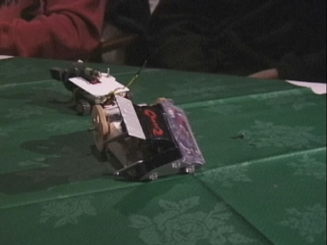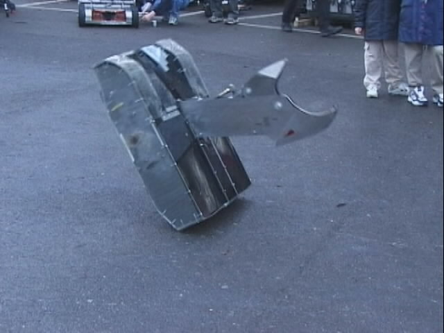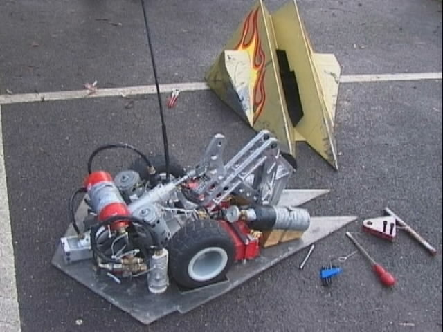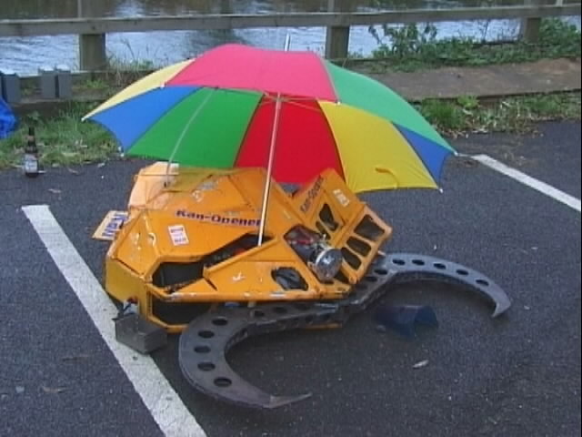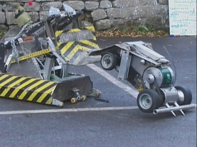 We had a big tussle with Kan Opener, who had a few goes at getting hold of us - they finally managed and made a bit of a mess of the top of the chassis - not the sort of damage we would expect at an event like this.