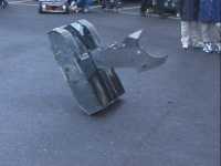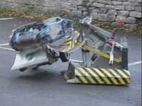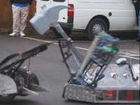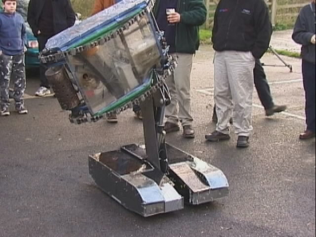 Also having a go at the remains of Judge Mech was the spinning disc robot Shredder - we don't think it should have been running its weapon at all, and when a bit of polycarb flew towards Dave and I, enough was enough - Dave went over and had words. Having a spinning disc run up at an event like this is not what we would expect to happen and it's not something most teams would dream of doing. My words about this incident on the Robot Wars forum sowed the seeds for the Event Safety Document, and I know the Shredder guys realise their mistake and are sorry for it now - everyone has forgiven them.