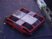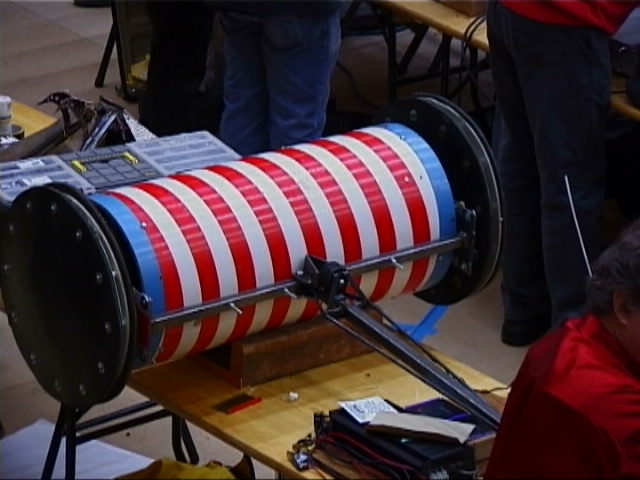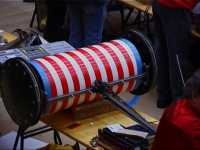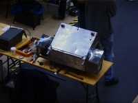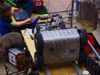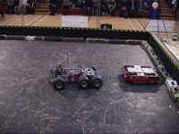 We were first up in the third and final session, against the Scorpion team's specially built Technogames tug of war machine Collosus. It's a 6WD truck, with 3 motors running at 36V, on rear go-kart slick tyres. We didn't know which way it was going to go at the start, but it was soon decided - Collosus weighted only 87kg, and we pulled them to our side of the arena fairly easily.