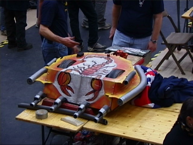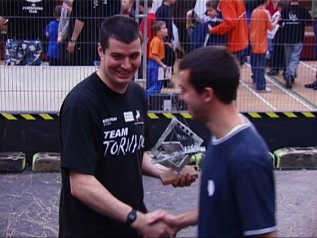 The walker built by Rob Knight (Mortis). At the end of the session the crowd were asked for their favourite fight of the session, and in the final vote between ourselves and Spawn, they voted for us - we were given a very nice trophy!