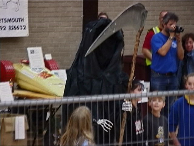 At the end of the session the audience were asked to vote on their favourite, and again they voted for us! It was a little embarassing, we didn't exactly enjoy winning two trophies for only two gentle fights, but the audience made the decision... Meanwhile the Grim Reaper came out to meet the audience!