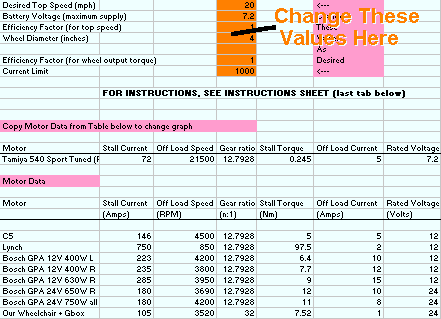 Just to give an idea of what the spreadsheet can do, we're going to set up the Bosch motor that most people use - the GPA 24V 750W. Remember the maths in the spreadsheet assume the motor is working to it's maximum, i.e. at full load.