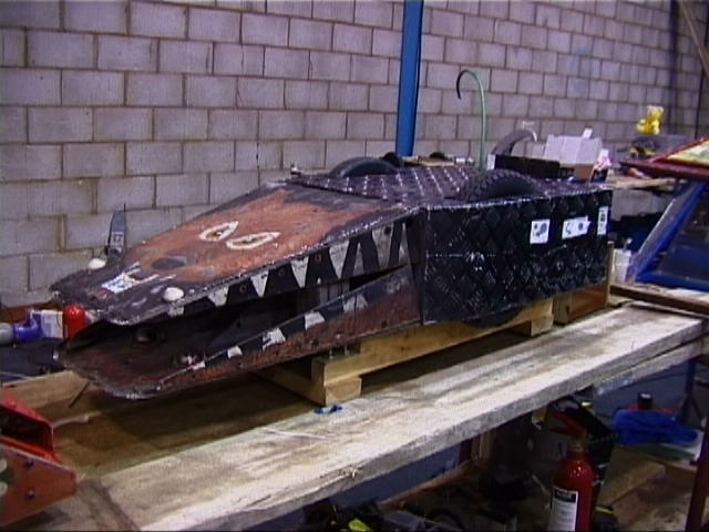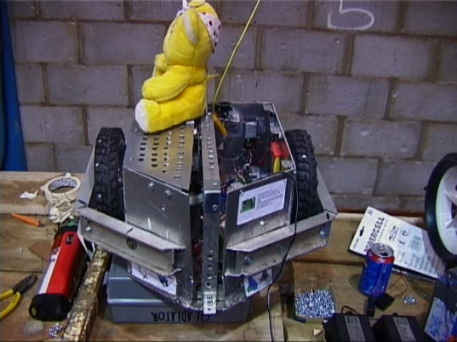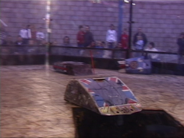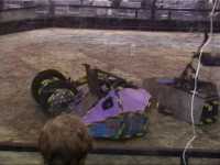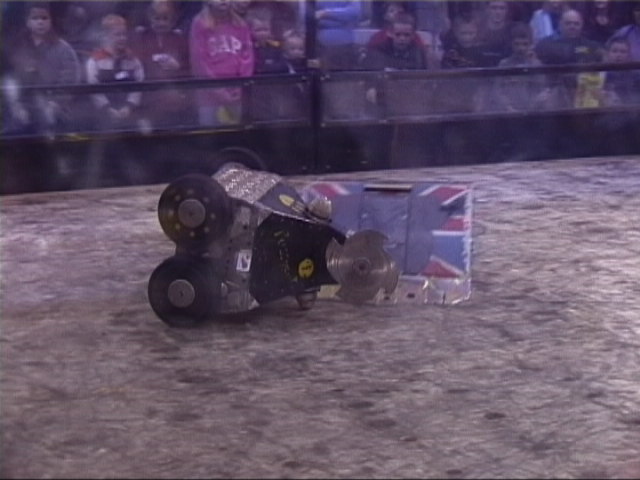 We also went in against Bulldog Breed, Mute and Mighty Mouse again. Bulldog nearly drove in the pit, and after getting stuck on the side and being released by us, stacked us on top of the upside down Mute! We were on our wheels again by the time cease was called, but Bulldog Breed was the clear victor.