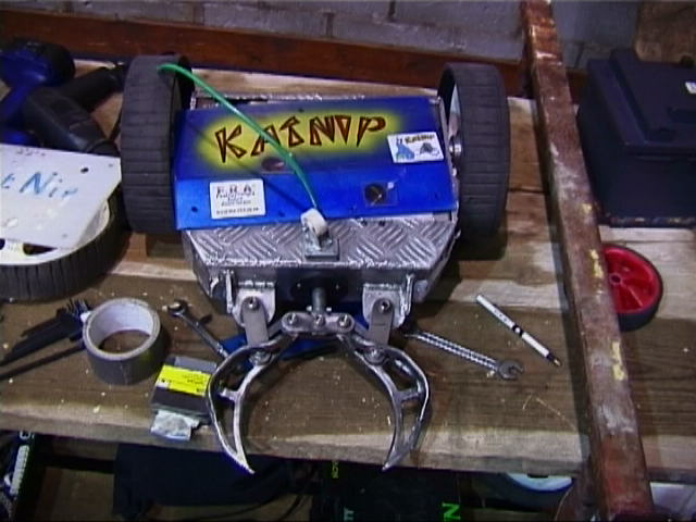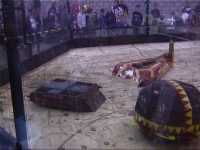 ...Tornado, Storm 2, Thor, and DTK (Steve's featherweight Dantomkia). Also present (no photos!) were Hells Teeth (Team S-Tec), Lazerus, Pussycat, Stinger, Dantomkia, King Humphrey, Roobarb, Bulldog Breed 3, Micro Mouse, Mute, Dominator 2, Aargh, Black and Blue, Cutlet, Velocirippa, Razer, Thunderbolt 3, Chaos 2, and the Roaming Robots house machines.