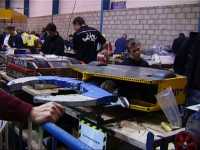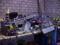 First day of the Roaming Robots War in the Wolds event at Louth in Linconshire. When we arrived at the Sports Centre in the morning, the pits were still being prepared, and we helped set up the benches. The Roaming Robots team had built a seperate arena to run the pay-to-drive machines, and this proved to help the event run smoothly throughout the weekend. The event was divided into four sessions - the first three open to the public, and the final one reserved for Kidgate School.